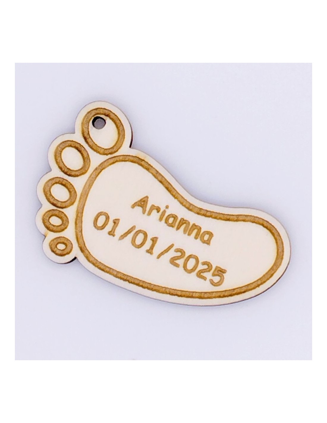 Portachiavi in Legno Piedino con Data Nascita Incisa